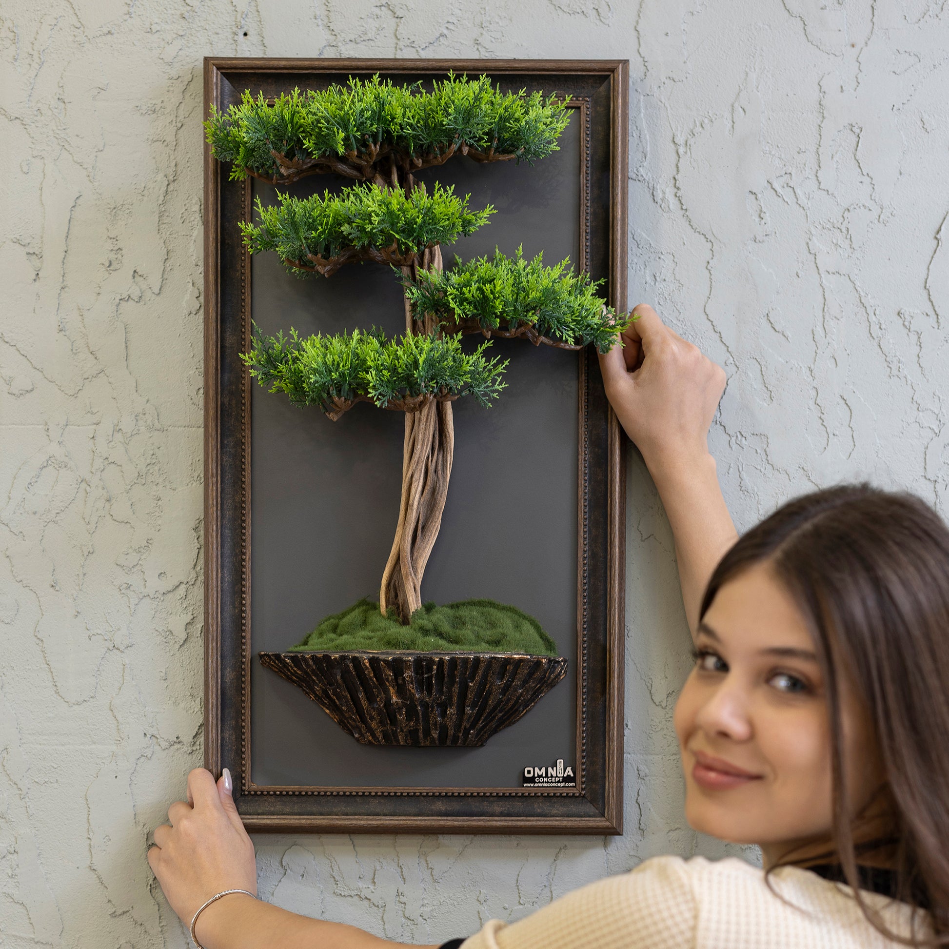 Unique Handmade Design: Each Bonsai Art Life Tree Tableau is meticulously crafted by hand, ensuring a one-of-a-kind piece of art that brings a touch of nature and tranquility to any space. The tree body features a rich brown color, adding to its natural appeal.