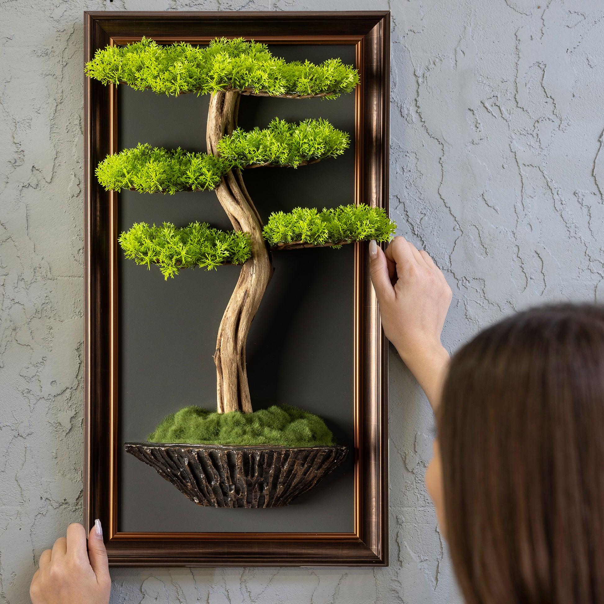 Unique Handmade Design: Each Bonsai Art Life Tree Tableau is meticulously crafted by hand, ensuring a one-of-a-kind piece of art that brings a touch of nature and tranquility to any space. The tree body features a rich brown color, adding to its natural appeal.